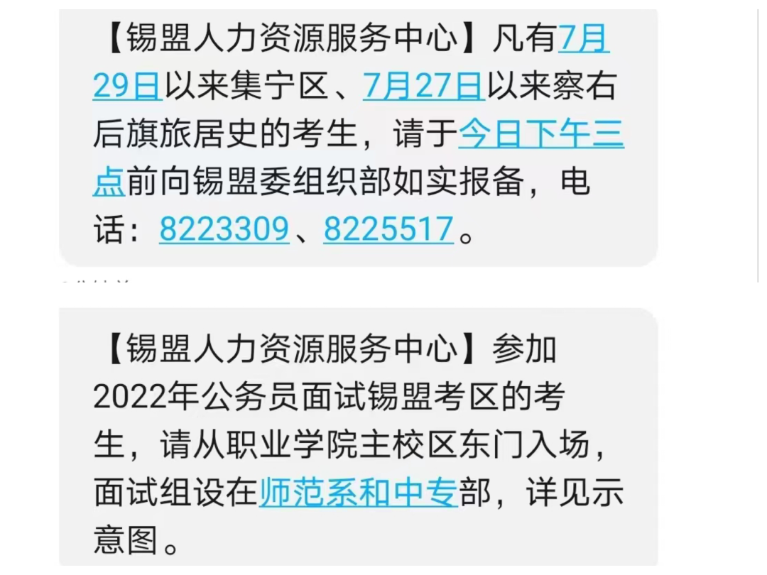 通過門戶網站、微信公眾號等渠道發(fā)布疫情防控告知書,通過移動信息“一對一”向考生推送考場布置及疫情防控信息,同步對考生參考前旅居情況進行電話摸排,確??忌樌麉⒖???记袄塾嬐扑汀耙粚σ弧毙畔?910人次,電話摸排1182人次,單獨向包頭市、烏蘭察布市、鄂爾多斯市、二連浩特市旅居史考生推送“三天兩檢”信息156人次,回訪率均為100%??荚嚾肟诜謩e設置指定通道,按照花名冊信息分組對考生健康碼、行程卡、48小時核酸檢測陰性證明進行嚴格檢查。設置專用通道,分別安排專車接送考官及涉疫考生??荚囋O置普通考場7個、隔離考場1個、閉環(huán)酒店遠程視頻考場1個、二連浩特市遠程視頻考場1個、蘇尼特右旗遠程視頻考場1個,隔離候考室5個,各考點同步開考,共有26名考生通視頻錄制方式參加面試,確保考生應考盡考。