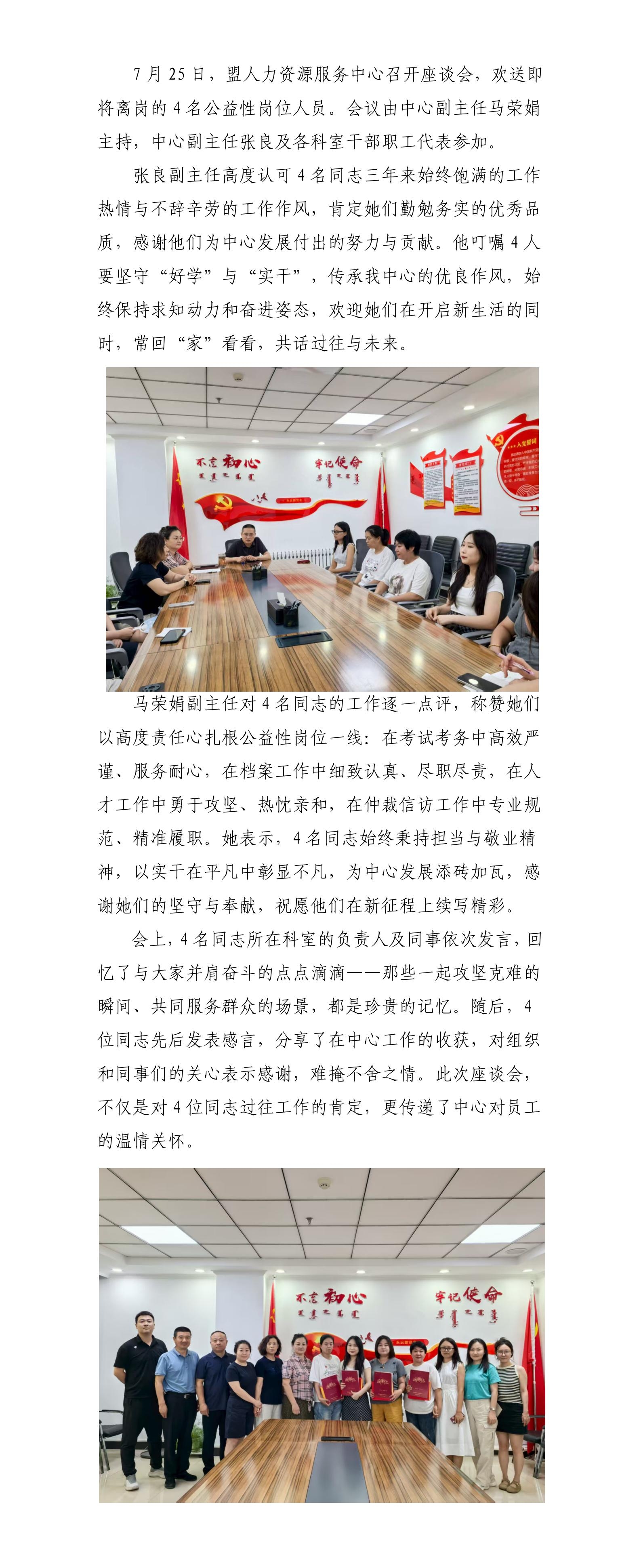 不舍離別情 祝福新征程——盟人力資源服務中心歡送公益性崗位人員