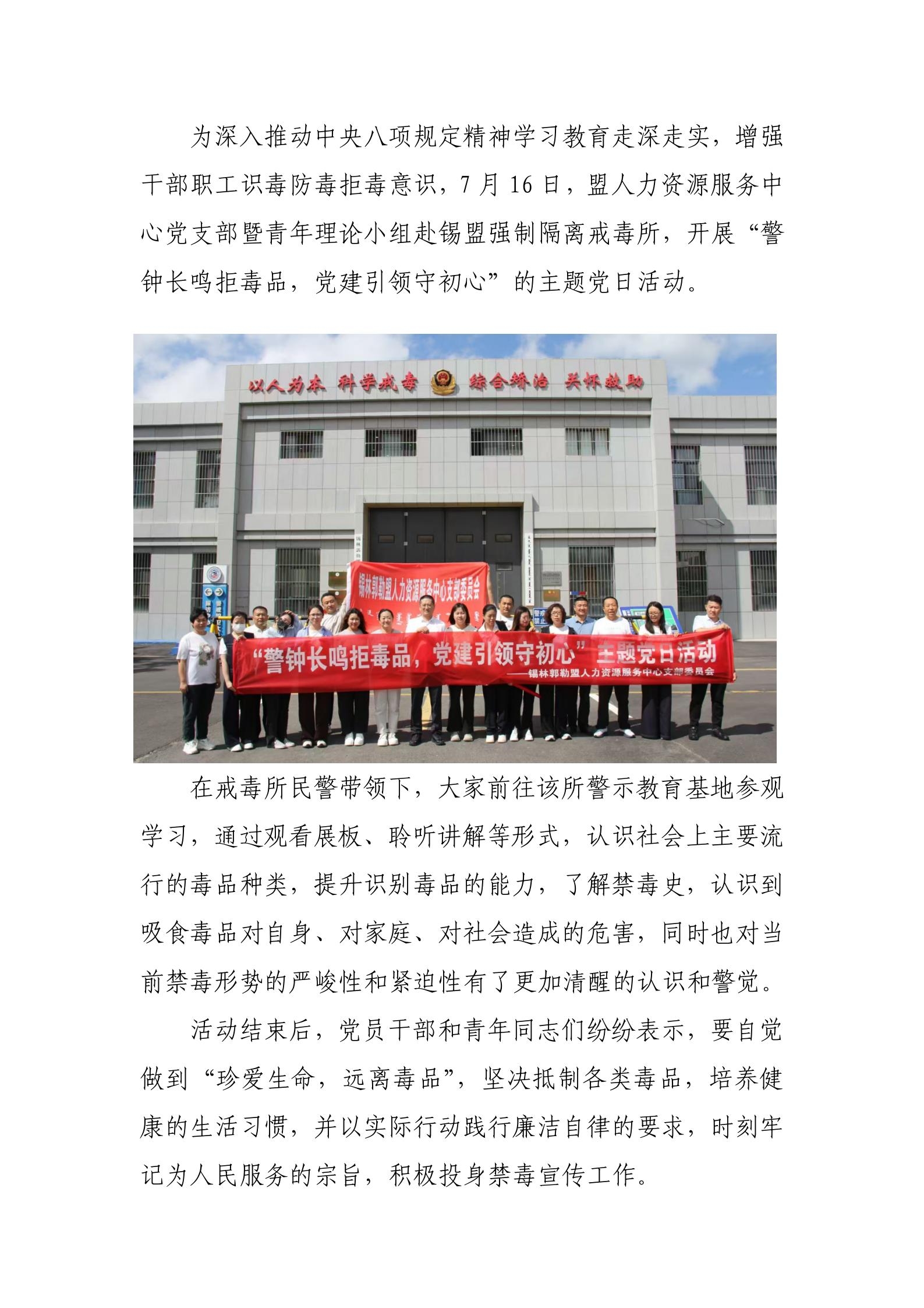 盟人力資源服務(wù)中心黨支部暨青年理論小組赴盟強(qiáng)制隔離戒毒所開展主題黨日活動(dòng)