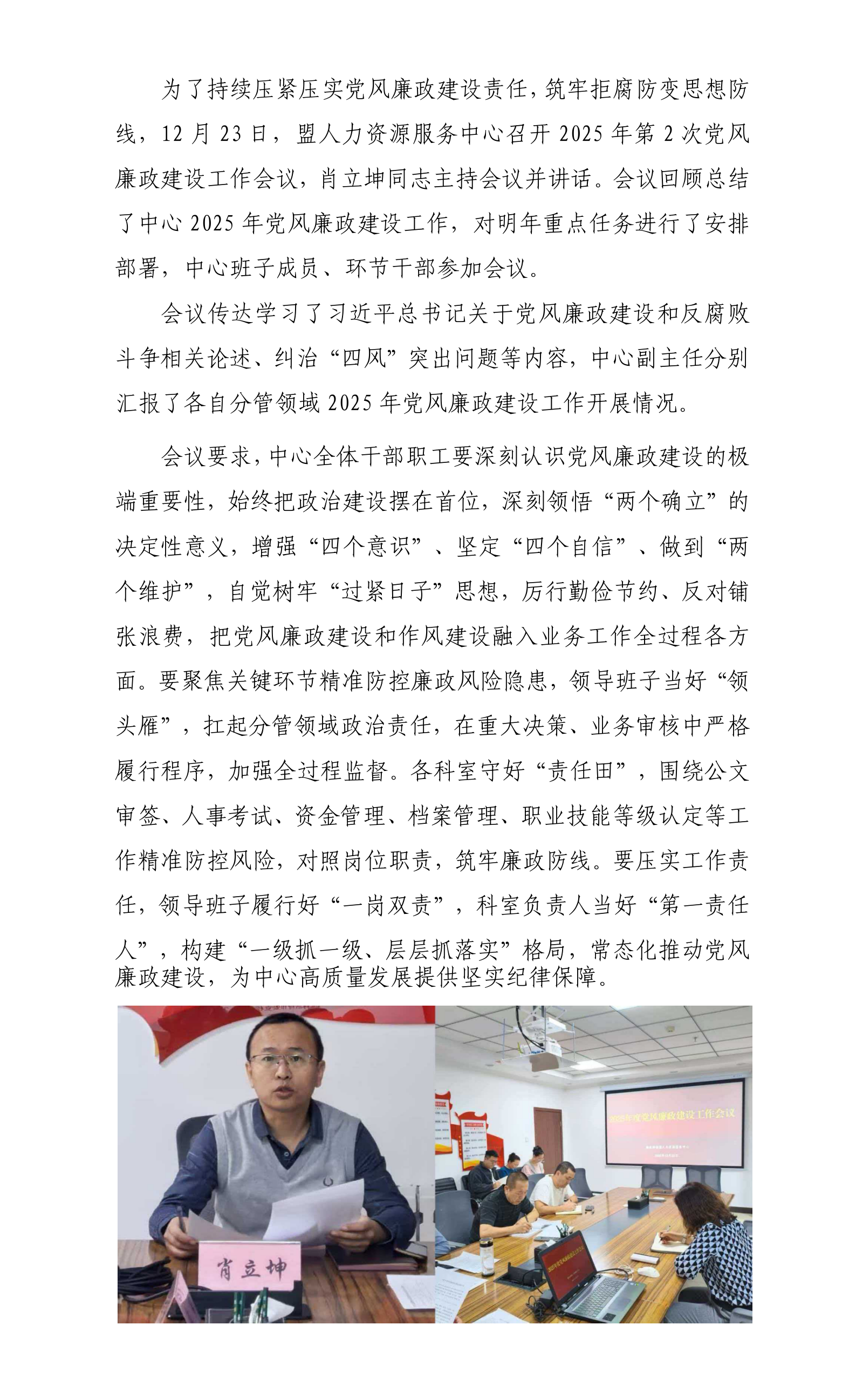 盟人力資源服務中心召開2025年第2次黨風廉政建設工作會議