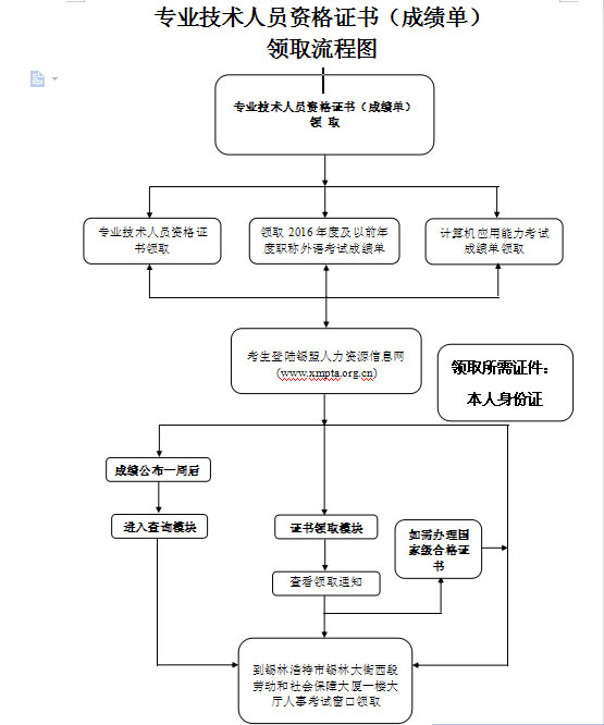 專業(yè)技術(shù)人員資格證書(成績(jī)單)領(lǐng)取辦事指南及流程圖
