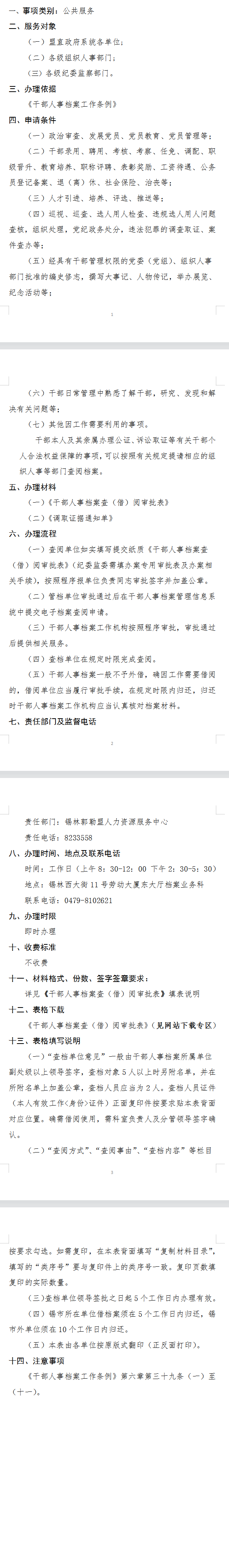 查(借)閱干部人事檔案辦事指南