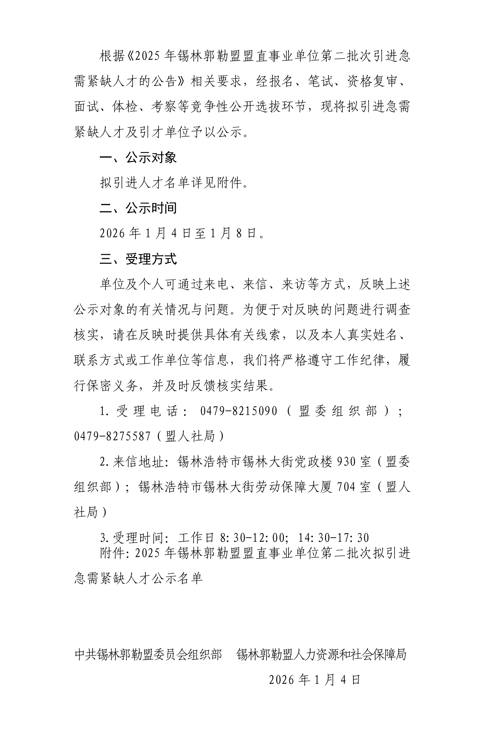 關(guān)于對(duì)2025年錫林郭勒盟盟直事業(yè)單位第二批次擬引進(jìn)急需緊缺人才的公示